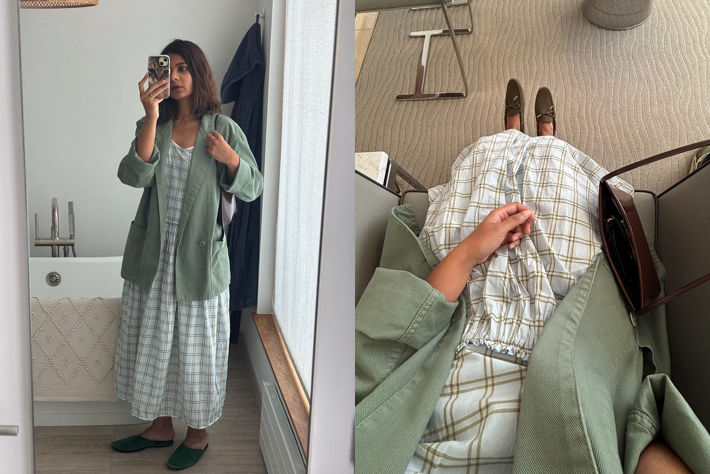 But I couldn’t be anyone other than myself, my body was still healing, and there were no other possibilities. I reluctantly picked an airy pale blue and brown checkered dress by an Italian designer named Sara Lanzi, and pulled on a pale green jacket from Lemaire, which I had bought in Paris a few years ago on impulse and with a modicum of guilt. At that moment, she was not who I wanted to be, but I had to accept that this was who I would need to be.