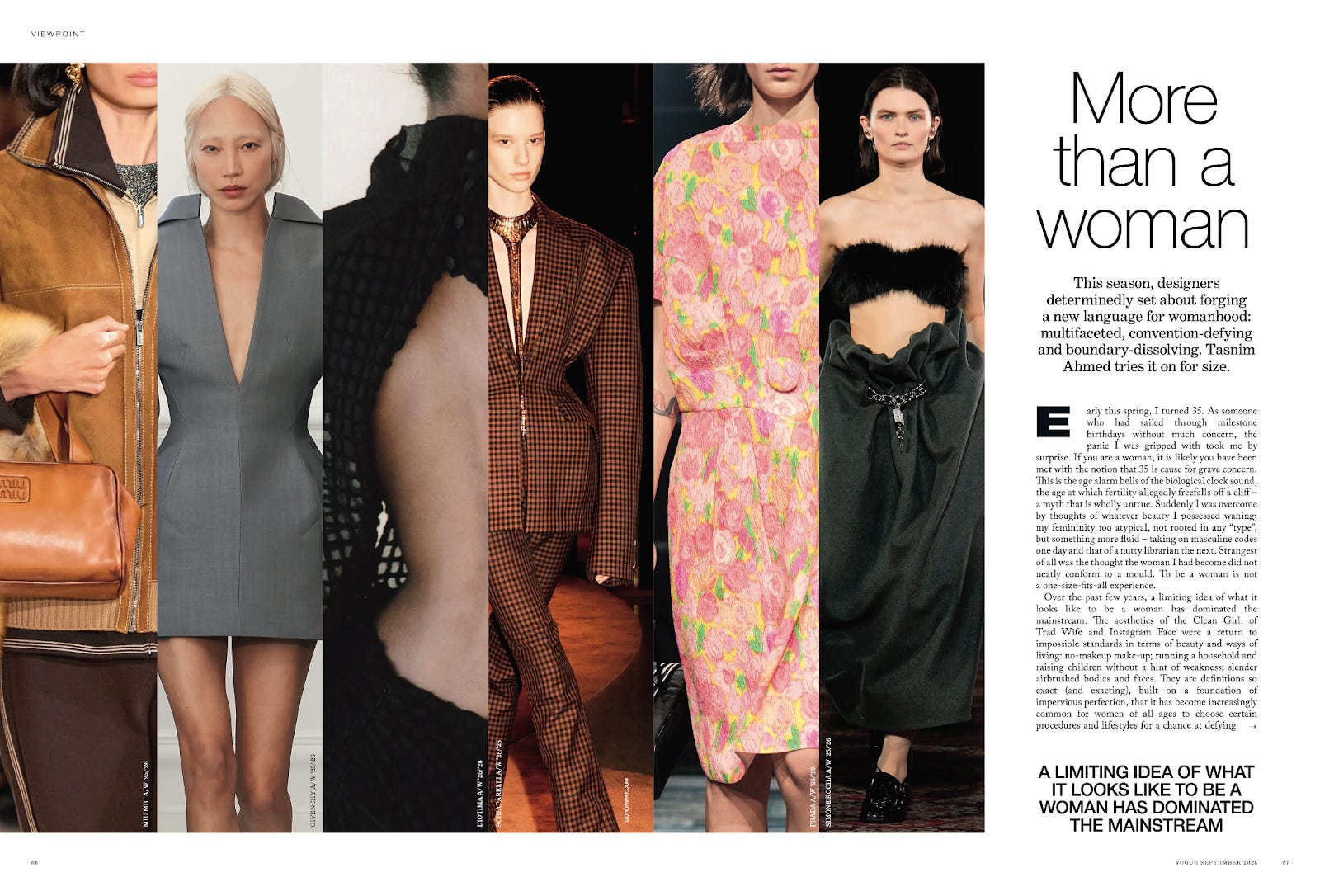 Earlier in the summer, I was asked by Vogue Australia to write an essay about what it means to dress as a woman for their September issue. I wrote this in the throes of my grief upon learning that I would not be able to conceive naturally, wrestling with my comprehension of my own womanhood. Upon completing this assignment, I had a sense of catharsis, but I suppose writing about Miuccia Prada and Begum Rokeya, the early 20th century Bengali feminist and writer, will do that for you! You can read it in the digital issue, or pick up a copy from your favorite esoteric magazine shop.