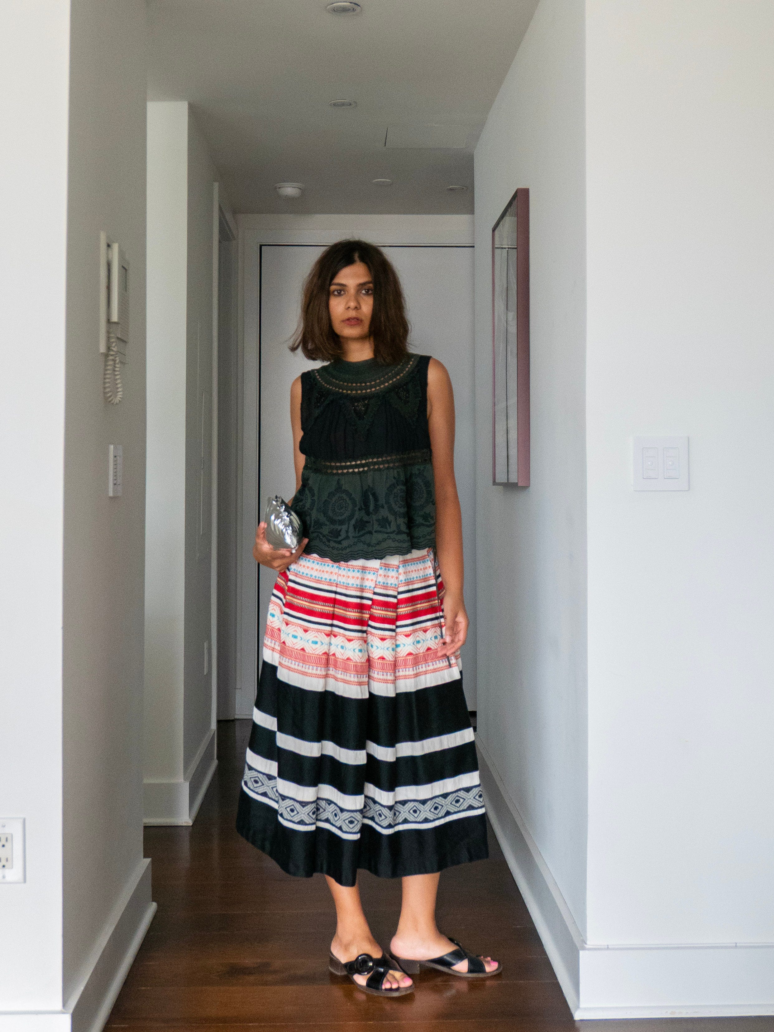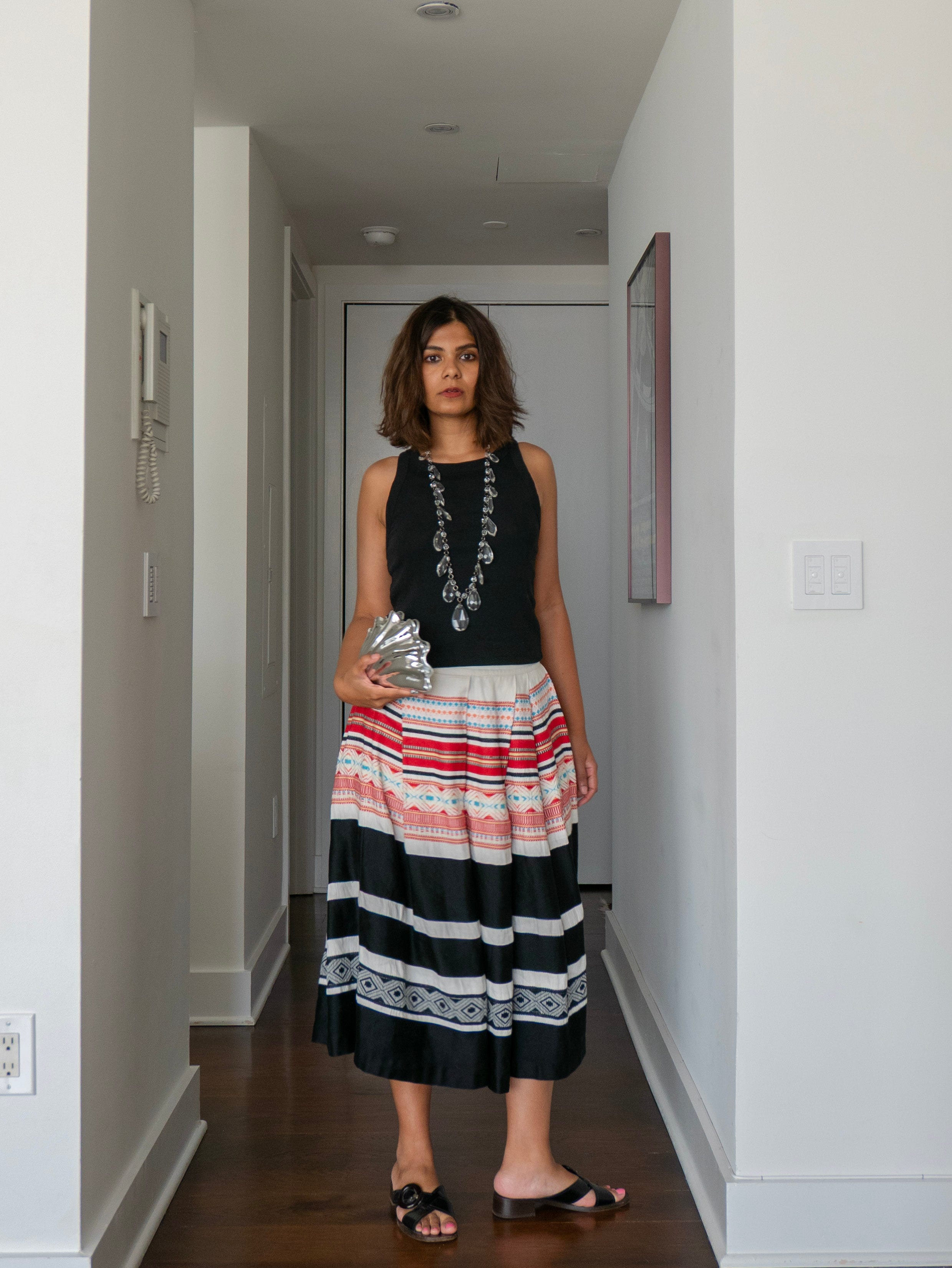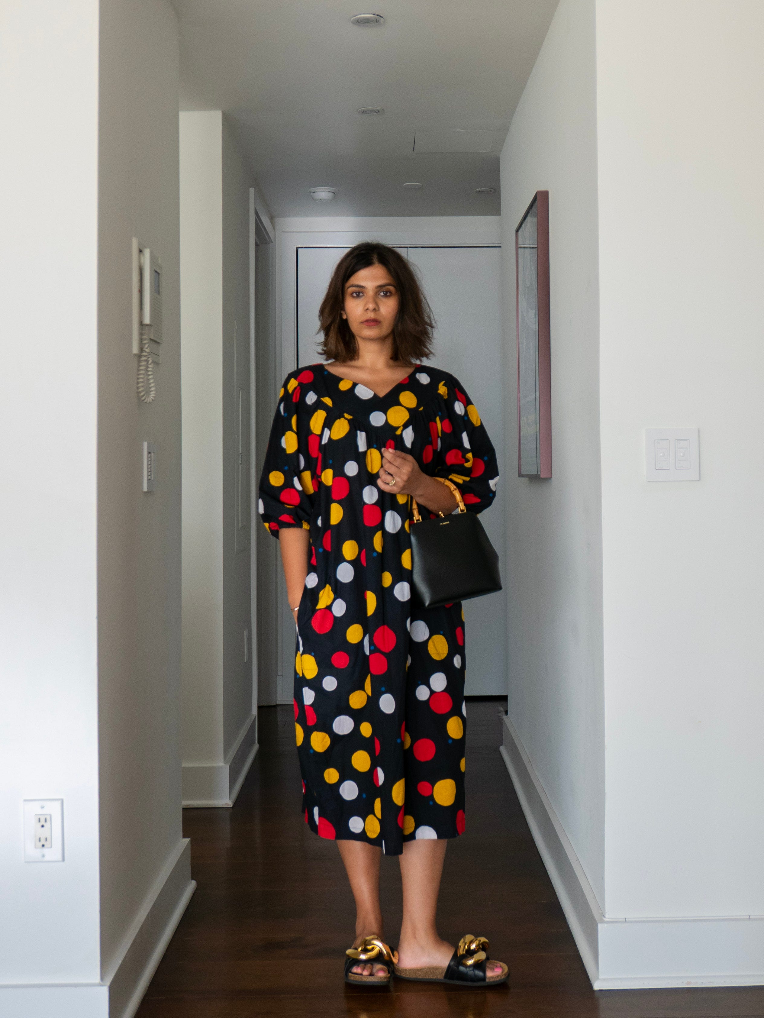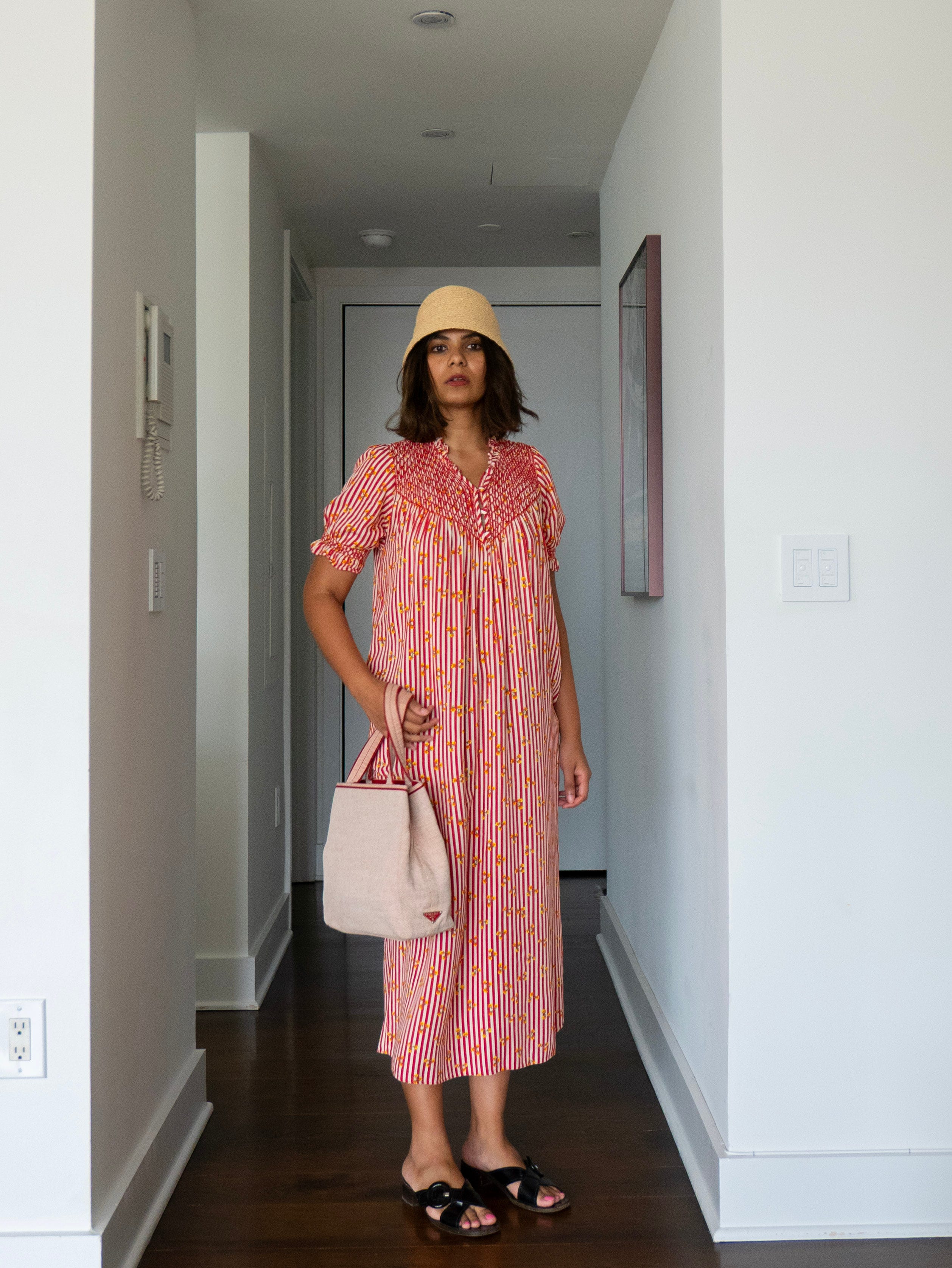 When I was not a girl but not yet a woman, nothing was worse to me than when I got my period in the summer. Clothes that would cling were unbearable; what I needed was to feel nothing against my skin, and preferably anything that could manufacture even the slightest breeze. Having spent most of my childhood and adolescence in Bangladesh, where the weather during summertime was not unlike fresh hell, I’ve learned a thing or two about dressing for extraordinarily hot temperatures during that time of the month. For example, cotton is your best friend, spandex is a heat stroke, and nylon is a death sentence. Volume is ideal for when the body becomes engorged, and excess fabric doubles as a fan when in desperate need of air. Length will save you from the horrific sensation of feeling a stranger’s lingering sweat on a subway seat, and one simply cannot shave their legs so often!